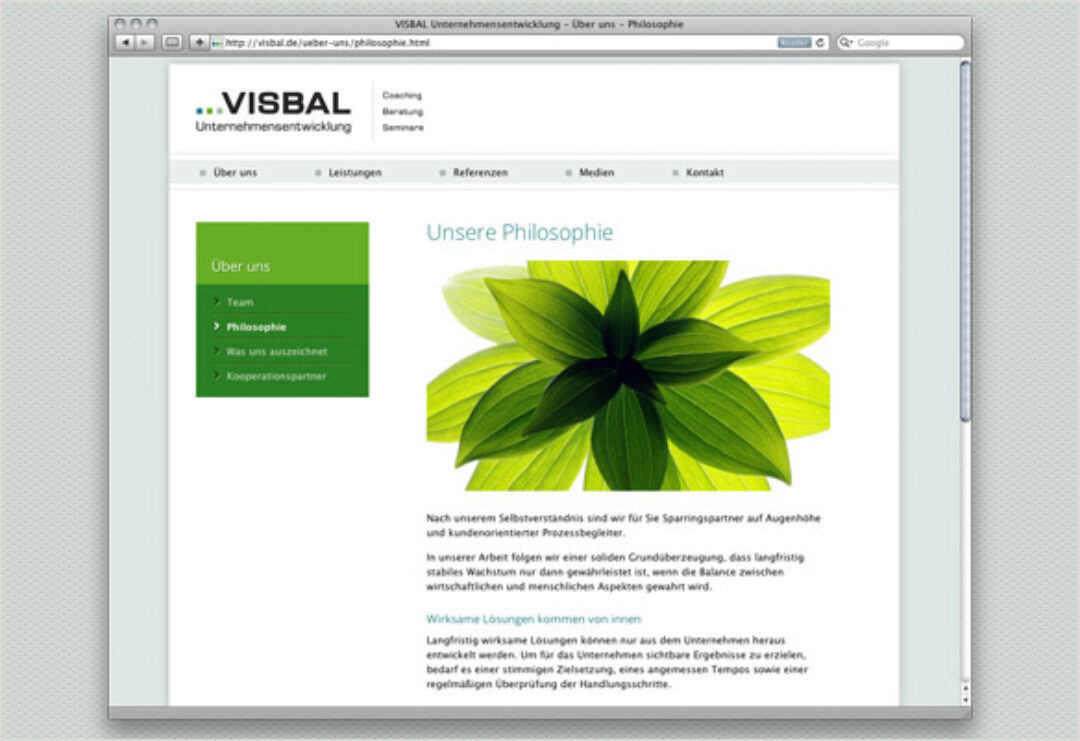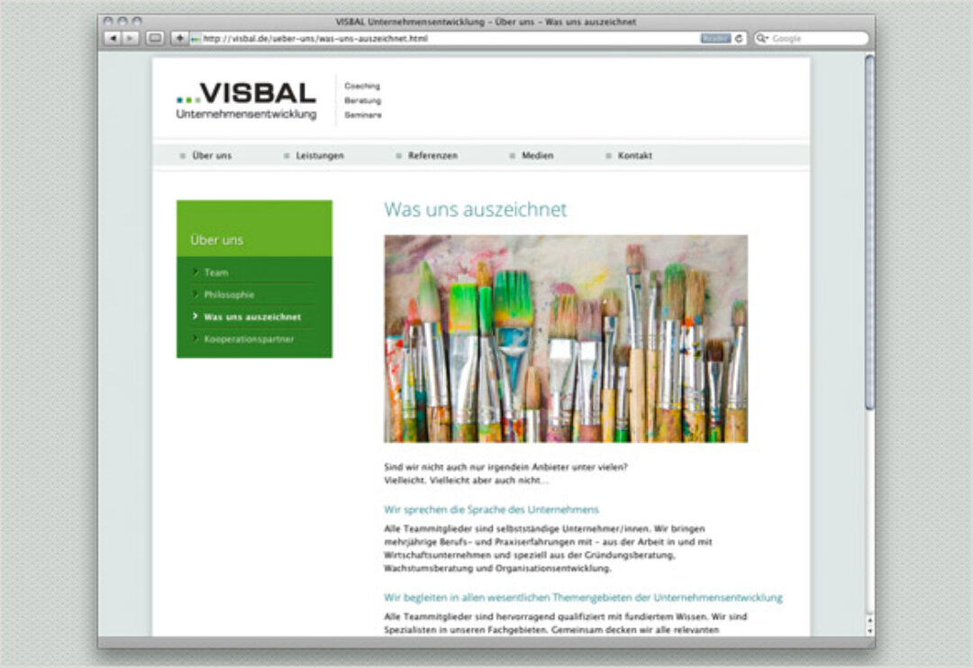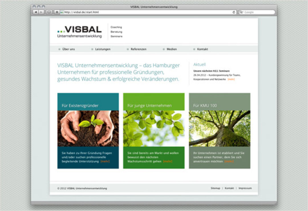 Neben der Logogestaltung und einer kompletten Geschäftsausstattung umfasst dies auch die Neugestaltung des Internetauftritts von VISBAL Unternehmensentwicklung.