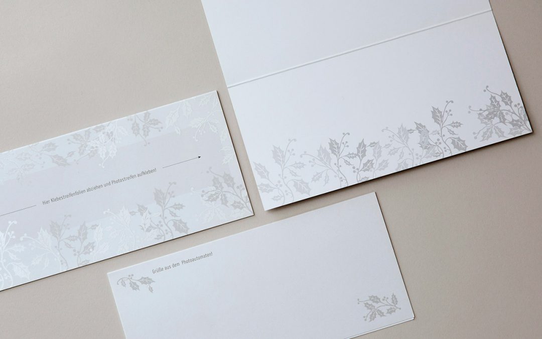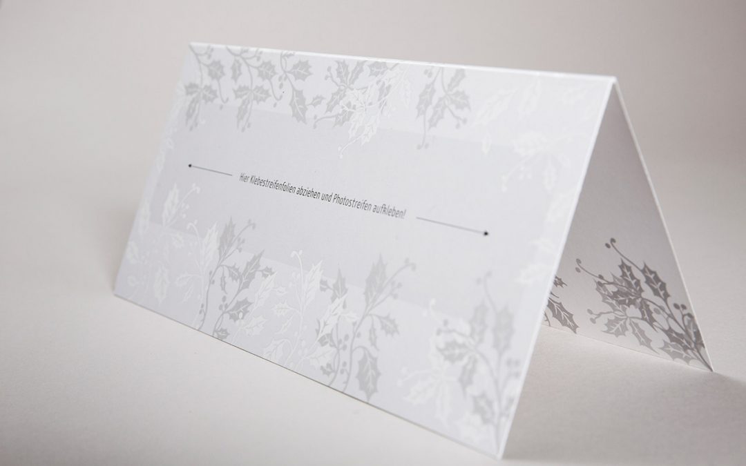 Klappkarte mit Freifläche für das Einkleben eines Fotostreifens.
